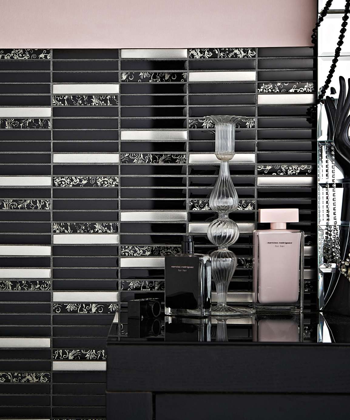 Stone name: Lyra Black Floral Glass Mosaic